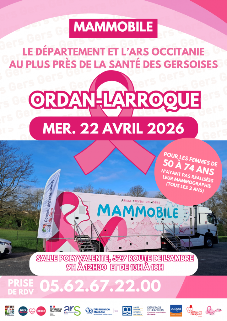 Le Conseil Départemental du Gers, en partenariat avec l’ARS Occitanie, déploie le Mammobile afin de rendre le dépistage du cancer du sein plus accessible sur l’ensemble du territoire.