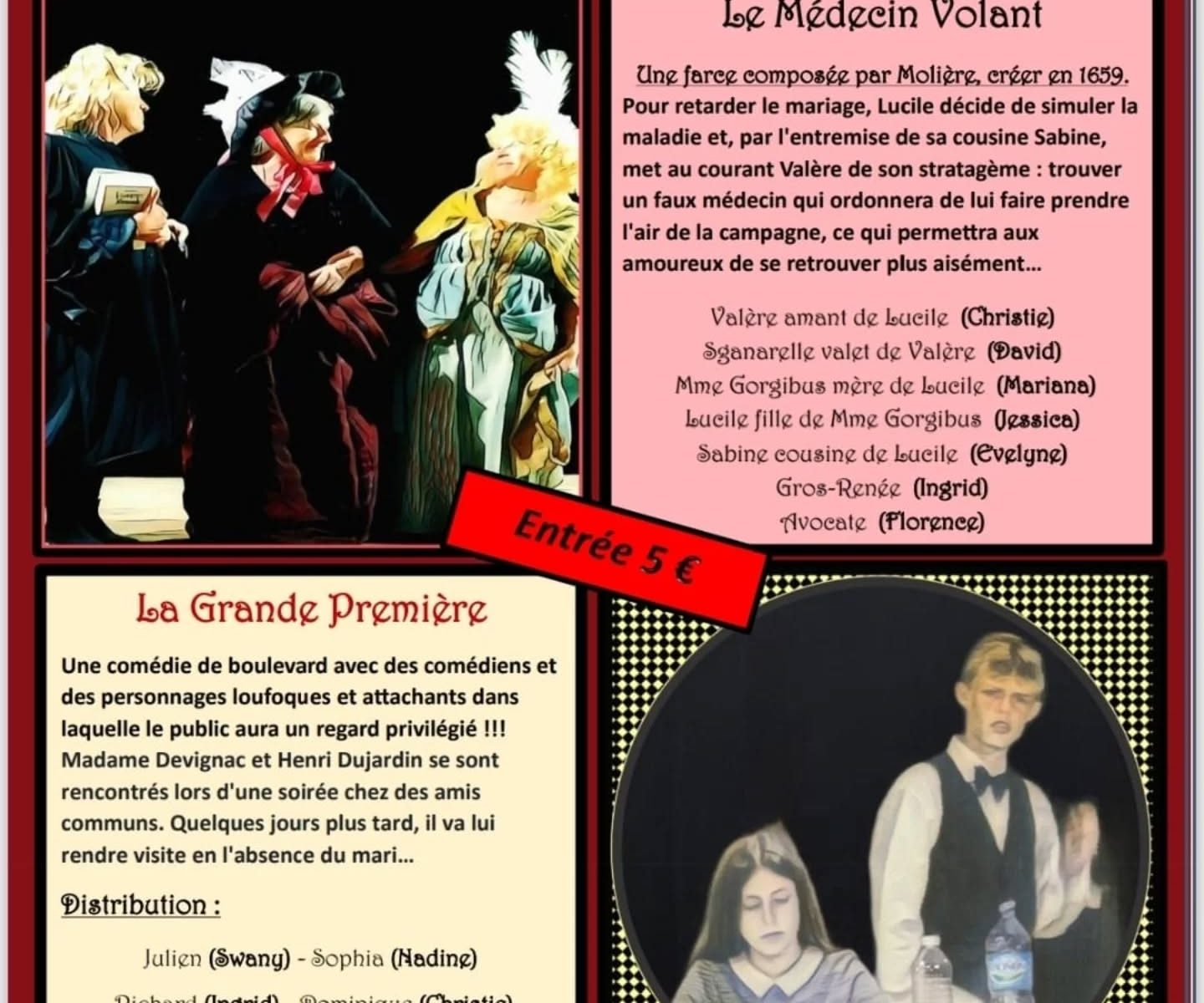 Venez passer un après-midi placé sous le signe du théâtre, du rire et de la bonne humeur avec deux spectacles :