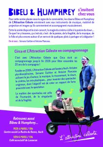 Jeudi 5 Mars à 19h00 la compagnie l’Attraction Céleste s’invite au café Sous Les Marronniers pour leur spectacle Bibeu et Humphrey.